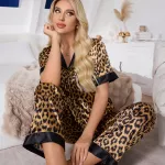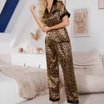 This pajama set is not just about good looks—it’s designed with your comfort in mind. The silky satin material feels indulgent, making it perfect for unwinding after a long day. Its lightweight yet durable fabric ensures a snug fit that doesn’t compromise on breathability or style. The leopard print adds a bold yet feminine touch, making you feel confident and chic, even at home.When to Wear