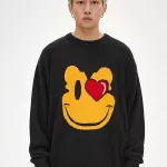 Stay cozy and stylish all season long with this eye-catching smiling face cartoon jacquard sweater. Perfect for autumn and spring, this sweater offers both comfort and fun. The playful design, featuring an embroidered smiling face, brings an easygoing vibe to your everyday wardrobe. Its soft, thick acrylic fabric ensures warmth during cooler weather, making it the ideal piece for casual outings, strolls in the park, or just relaxing with friends.Product Features