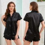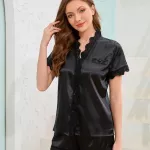 Indulge in the perfect blend of style, comfort, and sophistication with our Women’s Satin Lace Pajama Set. Designed for the modern woman who values both functionality and fashion, this two-piece sleepwear ensemble is an ideal choice for warm summer nights or casual lounging at home. Crafted from premium satin polyester, this set feels like a gentle caress against your skin, offering ultimate relaxation while exuding effortless elegance.Features That Elevate Your Comfort