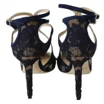 What sets the Jimmy Choo Lancer Navy Pumps apart is their exquisite blend of materials and impeccable craftsmanship. The delicate lace overlay adds a touch of femininity, while the suede leather ensures a luxurious feel. The strap closure not only enhances the overall design but also provides a secure and comfortable fit, making these pumps a perfect choice for both style and functionality.