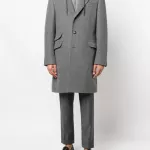 Crafted with meticulous attention to detail, this coat features a front button closure and classic lapels that exude refined charm. Its three welt pockets with side flaps and an additional front welt pocket add functionality and style. The double back slit enhances movement, while the regular fit ensures a polished and comfortable look. Whether you're stepping into a business meeting or heading out for a sophisticated evening, this coat promises to make a statement.