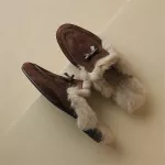 Perfect for casual wear or lounging at home, these mules are specifically designed for colder months. The thick wool lining keeps your feet warm, while the sturdy heel and soft suede upper make these slippers an ideal outdoor choice. The rabbit hair accent gives them a touch of luxury, making them the ideal shoe for both relaxing and running errands on crisp winter days.Step Into Comfort and Style