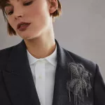 Made from premium virgin wool, this blazer offers exceptional comfort and warmth without compromising on breathability. Its double-breasted front closure with contrasting buttons exudes classic charm, while the spear lapels and structured shoulders create a sleek and polished silhouette. The iconic Precious Flower Crest applique on the front adds a unique touch of luxury, cementing its place as a standout piece in any collection.