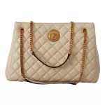 The Versace White Quilted Tote Handbag combines timeless design with modern functionality. The soft Nappa leather offers a luxurious feel, while the spacious compartment and secure zip pocket keep your essentials organized. The bold Medusa logo and gold-tone hardware make this tote an unmistakable statement piece. Its versatile strap allows you to carry it as a shoulder bag or crossbody, adapting to any occasion effortlessly.