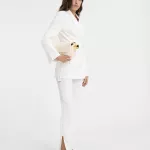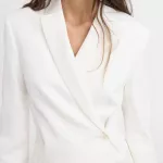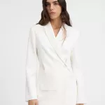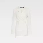 When you wear the Jacquemus La Veste Tibau Blazer, you’re not just wearing a piece of clothing – you’re making a statement. The blazer’s distinctive design sets it apart from other blazers on the market, combining traditional tailoring with fresh, modern elements. The off-center button adds a subtle touch of individuality, making it perfect for those who enjoy standing out while still keeping a refined and professional look. Whether you pair it with tailored trousers for a chic office look or dress it down with jeans for a more casual vibe, this blazer is sure to turn heads and add a level of sophistication to any outfit.