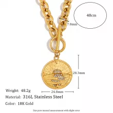 Use our battle tested marketing materials for OT Buckle Round Sunrise Pendant Necklace 18K Gold Plated Stainless Steel Jewelry