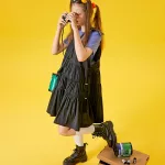 - Button Detail: A decorative button feature that adds a charming touch to the dress.