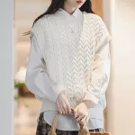 Unlike ordinary knitwear, this 2-in-1 detachable sleeve sweater offers both style and practicality. The buttoned sleeve detail provides a unique touch, allowing you to transition seamlessly between a cozy pullover and a trendy vest. With its neutral white shade and minimalist design, this piece pairs effortlessly with jeans, skirts, or tailored trousers, making it a must-have for any modern wardrobe.