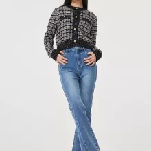 Step into a wardrobe staple with these high-waisted slim flare jeans, designed to fit your shape and enhance your style. These jeans offer a perfect blend of comfort and style, making them ideal for busy days at the office or casual outings. Crafted from a durable cotton-elastic denim, they provide just the right amount of stretch to keep you moving comfortably throughout the day. With a flattering bootcut design, they elongate your legs and add a touch of elegance to any outfit.Product Features