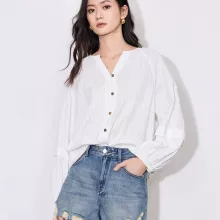 Use our battle tested marketing materials for Women’s Jacquard Lantern Sleeve Pure Cotton V-Neck Pullover Blouse