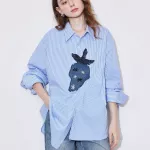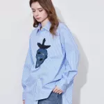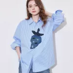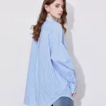 Refresh your wardrobe with this stylish and sophisticated long-sleeve blouse, designed for modern women who love a blend of comfort and elegance. Featuring a charming light blue and white striped pattern with a playful hint of strawberry-inspired hues, this blouse brings a fresh, airy feel to your spring and summer outfits. Whether you're heading to the office, attending a casual brunch, or enjoying an evening out, this versatile shirt offers the perfect balance of professionalism and relaxed charm.Premium Cotton for Breathable Comfort