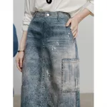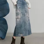 Upgrade your wardrobe with this high-waist vintage denim skirt, a perfect blend of classic style and contemporary elegance. Designed with a structured H-shape silhouette, this ankle-length skirt offers a flattering and comfortable fit, making it an essential piece for effortless everyday fashion. The premium cotton denim fabric provides durability and breathability, ensuring comfort for all-day wear. Whether paired with a tucked-in blouse or a casual tee, this skirt is a must-have for a chic and versatile look.