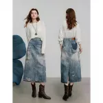 Unlike standard denim skirts, this high-waisted, straight-fit design gives a refined yet relaxed aesthetic. The ankle-length cut provides a sophisticated and elongating effect, while the structured denim fabric ensures a flattering drape. This skirt is the perfect choice for women who appreciate timeless fashion with a touch of modern elegance.