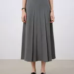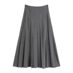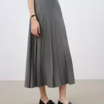 Elevate your style with this sophisticated grey A-line midi skirt. Designed for the modern woman, this skirt blends timeless elegance with contemporary details. The high-waist fit flatters your silhouette, while the pleated design adds graceful movement with every step. Whether you're dressing for the office, a formal event, or a casual outing, this skirt ensures a polished and refined look.