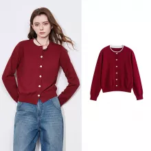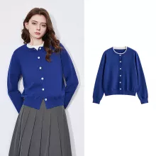 Use our battle tested marketing materials for Women's Knit Button Cardigan - Contrast Color, Round Neck, Elegant & Cozy