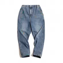 Use our battle tested marketing materials for Mens Vintage Ink-splattered Graffiti Jeans - Light Blue Straight Pants