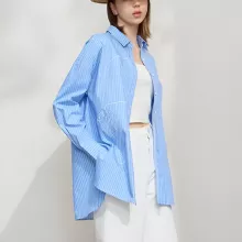 Use our battle tested marketing materials for Minimalist Women’s Cotton Striped Blouse – Casual Lapel Shirt with Embroidery