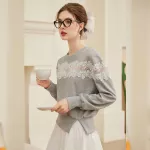 Refresh your spring wardrobe with the Hollow Lace Splicing Top—a perfect blend of cozy comfort and chic style. This round neck hoodie is designed to bring a touch of sophistication to your casual outfits. Crafted from a premium cotton and polyester blend, it combines breathability with softness, making it ideal for those early spring days. The delicate lace splicing adds a feminine flair, while the drop shoulder and ribbed detailing ensure a relaxed, flattering fit. Whether you're out for a coffee date or lounging at home, this top promises comfort and style every time you wear it.Product Features