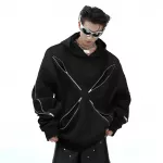 Crafted for the fashion-forward, this hooded sweatshirt combines soft polyester knit fabric with an oversized fit, making it a go-to for daily wear. The thoughtful deconstructed elements and exposed zippers add a rebellious touch, setting you apart from the crowd. Whether you're heading out for a casual night or layering up for cooler days, this versatile piece has you covered.
