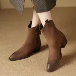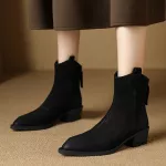 These genuine leather ankle boots are perfect for the spring season, offering versatility and elegance in one sleek package. The pointed toe and chunky heel create a flattering silhouette that pairs perfectly with everything from skirts and dresses to jeans and leggings. Whether you're at work, out on the town, or meeting friends for coffee, these boots are the ideal footwear to complete your outfit. The concise zipper design makes these boots easy to wear, while the high-quality materials ensure both comfort and longevity. The sheepskin insole provides cushioning for all-day comfort, and the rubber sole ensures you stay steady on your feet no matter where you go. Plus, with a 4.5 cm heel, they add just the right amount of height without sacrificing comfort. Embrace the spring season with these Western-inspired ankle boots—a stylish and practical choice for every woman looking to step out in style. Add them to your wardrobe today and experience the perfect combination of fashion and function!