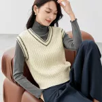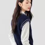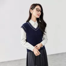 Bring a touch of chic sophistication to your spring wardrobe with this Spliced Knitted Vest for Women. Designed for the modern woman who appreciates both comfort and style, this vest is perfect for layering over your favorite tops or wearing alone for a more relaxed look. Crafted from a blend of polyester, acrylic, and nylon, it offers a lightweight yet warm feel, making it an ideal addition to your spring collection. The straight fit and V-neck design add a contemporary twist to the classic sweater vest, while the spliced pattern brings a refreshing, stylish element.Product Features