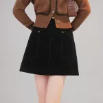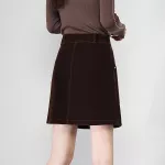 Made from high-quality polyester with a blended fabric finish, this skirt offers a soft, velvety texture that feels as luxurious as it looks. The structured A-line silhouette enhances your natural shape, while the natural waistline ensures a comfortable and flattering fit. Falling above the knee, this mini skirt adds a touch of femininity to any outfit while keeping you warm during chilly autumn and winter days.