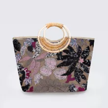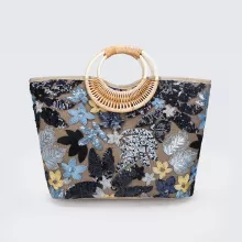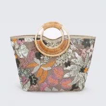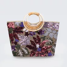 Use our battle tested marketing materials for Flower Embroidery Sequin Large Tote Bag with Rattan Handle