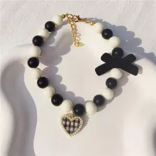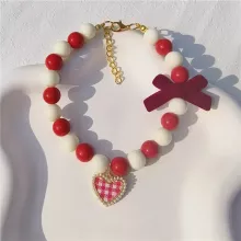 Use our battle tested marketing materials for Fashion Pearl Bow Cat and Dog Necklace Collar with Beaded Plaid Love Pendant