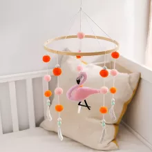 Create a soothing and engaging environment for your little one with this charming wooden baby crib mobile. Designed with soft felt flamingos and plush balls, this delicate hanging toy brings a sense of calm and wonder to your baby's nursery. Perfect for newborns, this musical rattle toy helps stimulate early visual and auditory development while adding a stylish decorative touch to any crib.