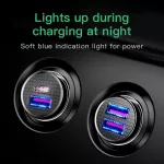 Thanks to its multi-port design, you can easily charge two devices at once, making it ideal for families, road trips, or sharing with a friend. And with its built-in safety features, you can rest easy knowing your devices are protected from overcharging or overheating. The intuitive blue indicator light makes it easy to see the charging status, even in low light conditions, and the charger’s ultra-compact design means it won’t take up too much space in your car.