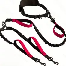 The Reflective Hands-Free Double Dog Leash is designed with both you and your dogs in mind. Its shock-absorbing bungee system ensures that you won't feel the strain of pulling, while the no-tangle swivel splitter gives your dogs the freedom to move without getting caught up. The reflective stitching offers added safety in low-light conditions, while the padded handles provide ultimate comfort and control. Plus, with its hands-free option, you can easily switch from walking to running without having to constantly adjust your grip. Whether you're running, walking, or just out for a leisurely stroll, this leash makes managing two dogs a breeze.