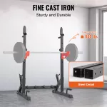 - Heavy-Duty Construction: Built with a reinforced thick tubular steel frame, this squat rack offers exceptional stability and durability, supporting up to 600 lbs of weight. Its strong structure makes it perfect for intense workouts.
