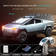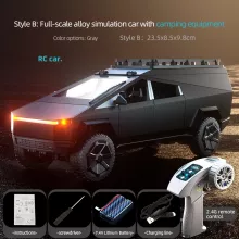 Get ready for an adventure with the ultimate remote control toy set! This RC car and motorcycle set offers endless fun for kids and adults alike. Equipped with realistic camping gear, these simulation model vehicles bring the action right to your doorstep. Whether racing the Cybertruck-inspired vehicle or exploring off-road terrain with the included motorcycle, this set is perfect for thrill-seekers and aspiring explorers.