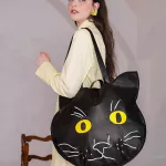Charming & Practical: The Women’s Cute Cat Embroidered PU Leather & Canvas Bag