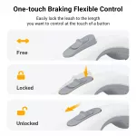- Automatic Retracting Mechanism: The leash automatically retracts, making it easy to adjust the length without any hassle. Simply press the button to lock the leash in place and release it for smooth extension when needed.