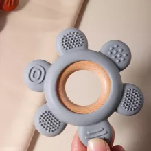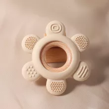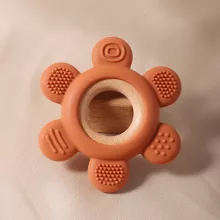 Give your baby the comfort they need during teething with this beautifully designed Baby Wooden Flower Teether with Silicone Ring. Combining the natural warmth of wood with the soft, chewable texture of food-grade silicone, this teething toy soothes sore gums while encouraging sensory development. Designed for little hands to grasp easily, it’s the perfect companion for babies during their teething journey.