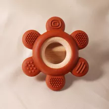 This teething toy is designed to be used at home, in the car, or while on the go. Whether your little one is fussy from teething pain or simply looking for something to chew on, this teether offers a safe and soothing experience. The combination of wood and silicone textures keeps babies engaged while helping them develop hand-eye coordination.