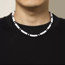 Elevate your style with this boho-inspired black and white polymer clay choker necklace. Designed with a vintage touch, this beaded clavicle chain is the perfect accessory for men who appreciate simple yet bold fashion. Whether you're going for a laid-back beach look, a festival-ready vibe, or a casual everyday outfit, this necklace is a must-have addition to your collection.