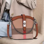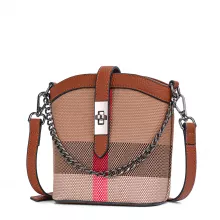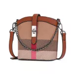 Elevate your everyday look with this fashionable mini bucket bag that effortlessly combines style and functionality. Made from a luxurious blend of high-quality leather and durable canvas, this shoulder bag offers the best of both worlds. Whether you're heading to the office, a lunch date, or out shopping, this bag adds a touch of sophistication to any outfit. The plaid pattern and chain detailing give it a modern edge, while the practical design ensures all your essentials are carried with ease.