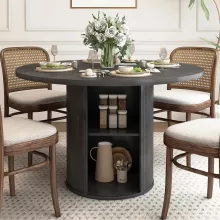 Use our battle tested marketing materials for Round Dining Table for 4 with Storage Shelf & Wood Slide Door