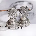 Step into a world of elegance and tradition with these Ethnic Silver Color Tassel Jhumka Earrings. Perfect for adding a touch of cultural beauty to any outfit, these earrings are a must-have accessory for women who appreciate vintage and gypsy-inspired designs. Whether you're attending a festive celebration, a night out, or simply want to elevate your everyday style, these earrings will give you a striking and graceful look.
