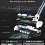 - LED Motorized Floor Head: The motorized V-shaped floor head comes with four bright LED lights, so you can easily spot and eliminate dirt in dimly lit areas. No more missing hidden dust in corners or under furniture!
