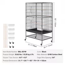 31.1 inches long, 20.1 inches wide, and 52 inches high, this bird cage provides plenty of space for your birds to move around freely. The
