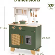 - Safe and Durable: Crafted from high-quality solid wood, this kitchen set is built to last. The polished edges ensure that it’s safe for children, while the sturdy construction guarantees long-lasting durability. It’s designed to handle hours of fun while staying safe for little hands.