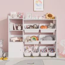 - Large Storage Capacity – Features 8 removable bins, 2 bookshelves, and a storage cabinet.