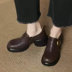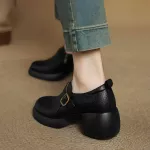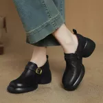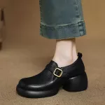 Refresh your wardrobe with these chic, genuine leather pumps designed for everyday sophistication. Crafted for the modern woman, these stylish shoes combine timeless design with all-day comfort, making them your go-to pair for spring and autumn. With a round toe, chunky heel, and an elegant belt buckle detail, they offer just the right blend of casual charm and refined flair. The genuine cow leather upper and pigskin lining promise durability and breathability, ensuring your feet stay comfortable even on busy days. A convenient side zipper adds functionality, allowing for easy on and off without compromising the clean, minimalist design. Whether you’re heading to a casual brunch, a day at the office, or strolling downtown, these pumps are designed to complement your every move. The 2.56-inch (6.5 cm) chunky heel gives you that extra lift while keeping stability in check, so you can walk confidently throughout the day. The solid platform design and TPU sole offer a flexible yet sturdy grip, making these shoes as practical as they are stylish. Available in classic black or warm brown, they’re a perfect match for any fall or spring outfit.Why You'll Love These Pumps