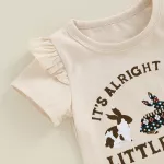 Get your little one ready for the sweetest spring celebration with this charming 2-piece Easter outfit for baby girls. Featuring a soft short-sleeve romper with an adorable letter and bunny print, paired with vibrant patterned flare pants, this set is perfect for those picture-worthy Easter moments and beyond. Designed for comfort and cuteness, the romper is made from a breathable cotton blend that’s gentle on baby’s skin, while the polyester pants offer a playful, flowy flair for extra style. Whether you’re planning a family gathering, Easter egg hunt, or a casual day out this spring, this outfit brings both charm and comfort to your baby girl's wardrobe.Product Features
