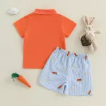 Celebrate Easter in style with this irresistibly cute 2-piece baby boy outfit. Featuring a bunny embroidery short-sleeve T-shirt paired with playful carrot-striped shorts, this charming set is designed to bring smiles and comfort all spring and summer long. Made with a soft and breathable cotton-blend fabric, it's perfect for your little one's special moments—whether it’s an Easter party, a sunny day at the park, or just adorable everyday wear. This outfit isn’t just festive—it’s also built with thoughtful details to keep your baby happy and comfortable. The T-shirt features a turn-down lapel collar for a touch of preppy charm and sweet bunny embroidery for the perfect seasonal flair. The elastic waist shorts ensure a snug yet gentle fit and allow your baby to move freely during playtime. Lightweight and cool, this outfit is an ideal pick for warm-weather adventures.Key Features