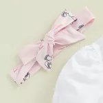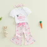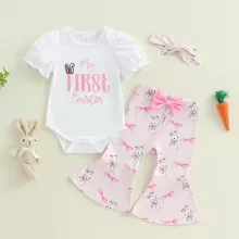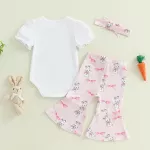 - Complete 3-piece outfit: Includes romper, bunny print flare pants, and headband