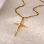 Discover the perfect blend of simplicity and charm with the Cubic Zirconia Cross Pendant Necklace for women. This vintage-inspired necklace features a stunning cross pendant set with shimmering cubic zirconia, designed to bring a touch of grace and sophistication to any outfit. The necklace is crafted from high-quality stainless steel, ensuring durability and long-lasting beauty. Whether you are attending a casual outing or a special event, this necklace is the perfect accessory to elevate your look.